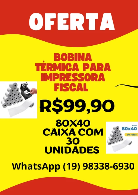 Bobina térmica para impressora fiscal à pronta entrega.
